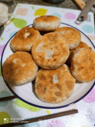 5. 整形:将包好的肉烧饼擀成圆饼状,表面刷上一层食用油。